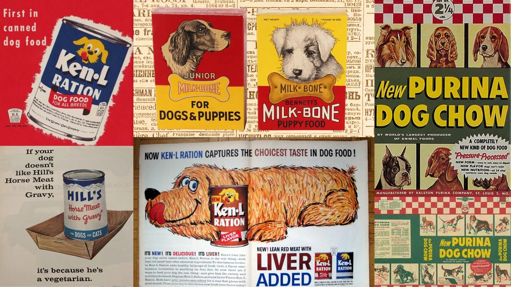 Первые коммерческие продукты появились в XIX веке — это были собачьи бисквиты.